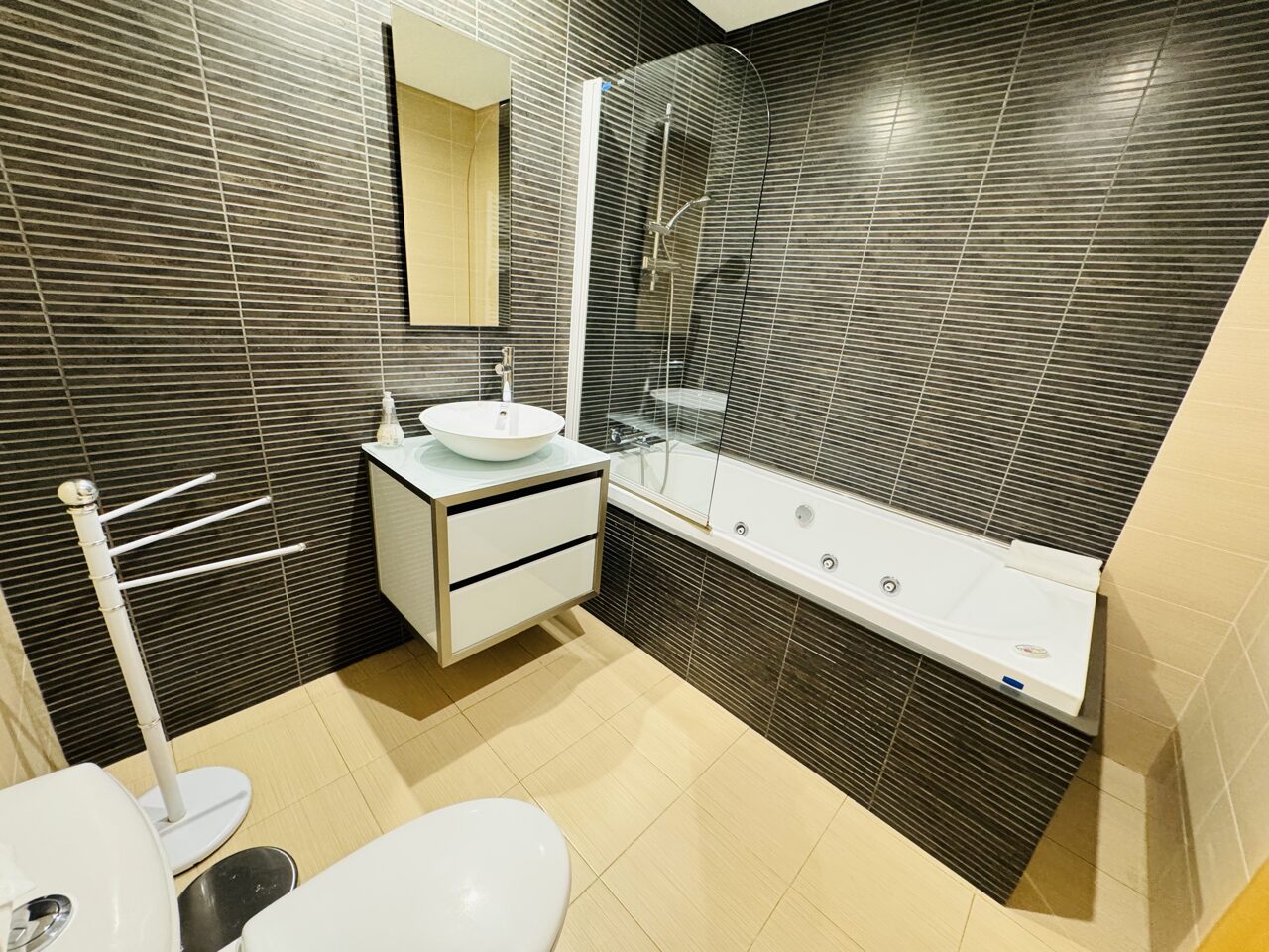 This beautifully decorated apartment boasts a range of amenities to ensure a comfortable stay. Inside, guests will find a TV, a stylish living room table, and reliable WiFi coverage. The kitchen is fully equipped with modern appliances, including a dishwasher, microwave, oven, hob, fridge/freezer, and a washing machine, along with essential cooking utensils.