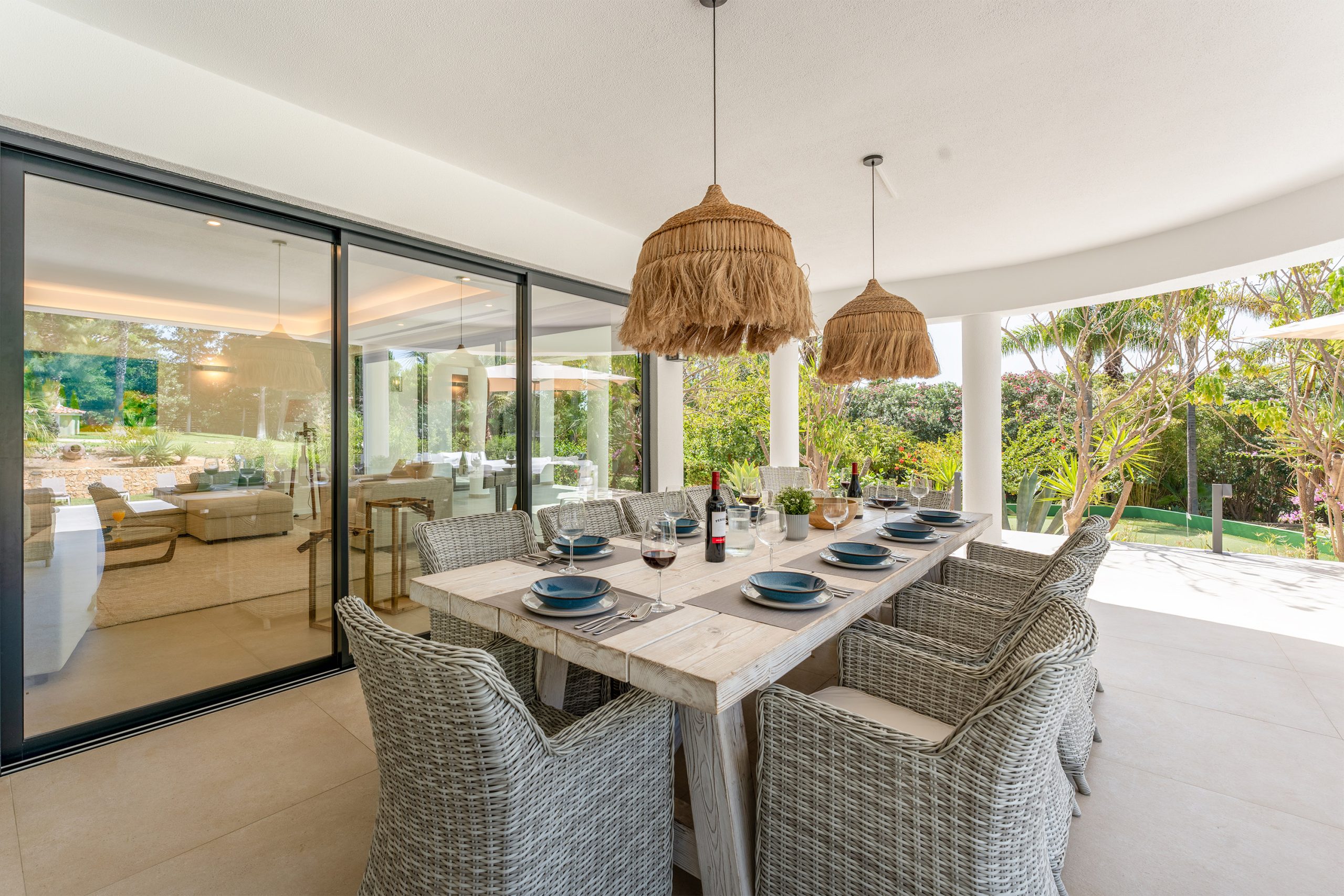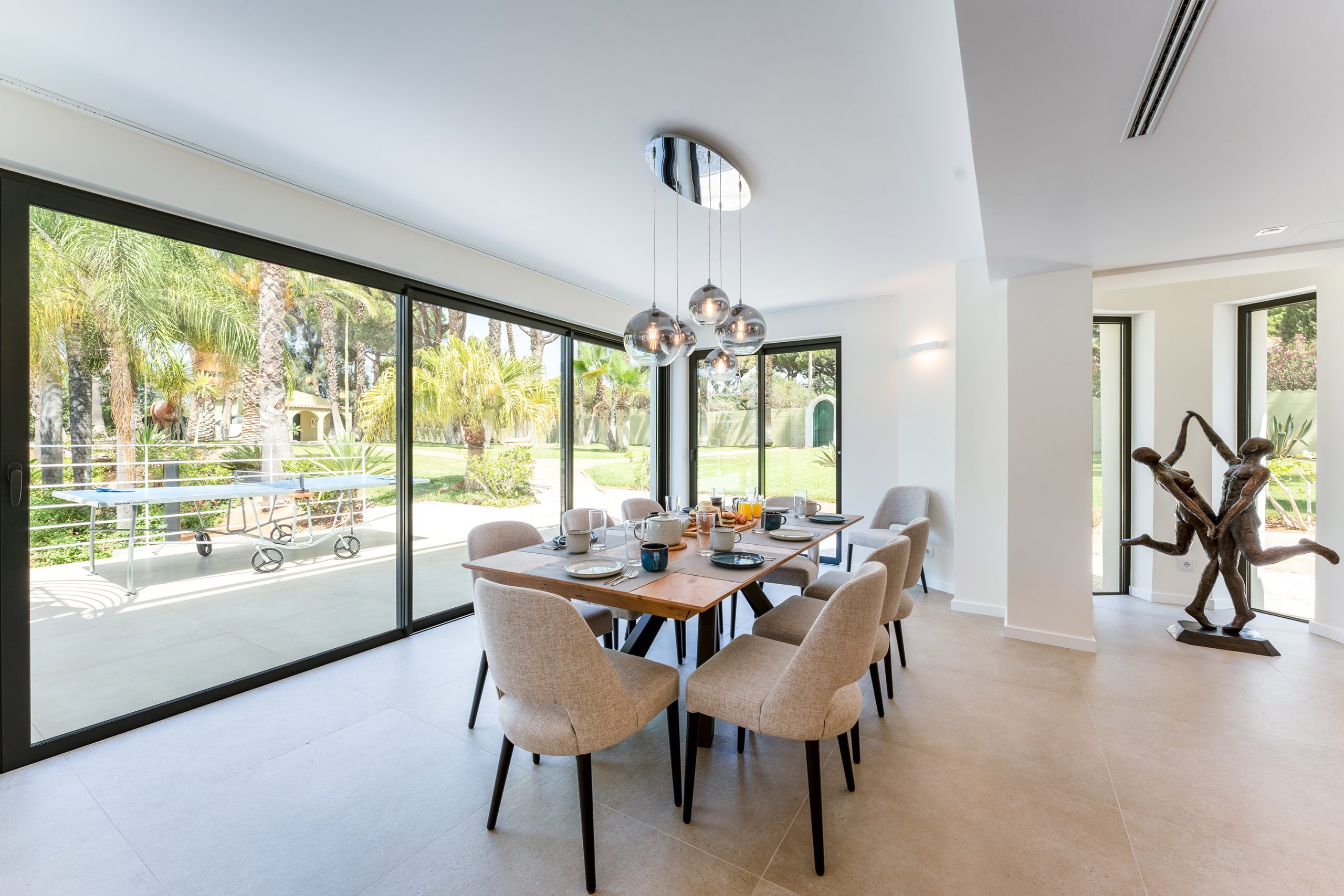 Uma grande mesa de jantar ao ar livre é a base das refeições ao ar livre, combinada com barbecue próximo, a proximidade da cozinha e o mobiliário de exterior com vista para a área da piscina, os seus esforços culinários serão consideravelmente reduzidos.